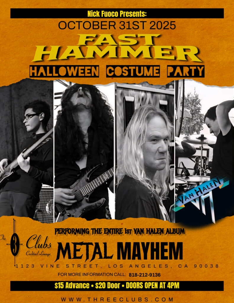 FH: WELL… begins cackling …. We are playing in Hollywood, CA for HALLOWEEN!!!! We got a show at Three Clubs scheduled for METAL MAYHEM. And just to be clear, we are doing something particularly special. We are going to be performing THE ENTRE… drum roll… VERY FIRST…. VAN HALEN ALBUM. Beginning to end. I have always been a guitarist’s Guitarist. And I have it in mind to play the ever living SHIT out of that album because it truly is one of my favorite records. I hope to hit it note-for-note. That is the goal and the standard I have set for the band. I hope it will be a great time. I am looking forward to it and I hope you all will too!