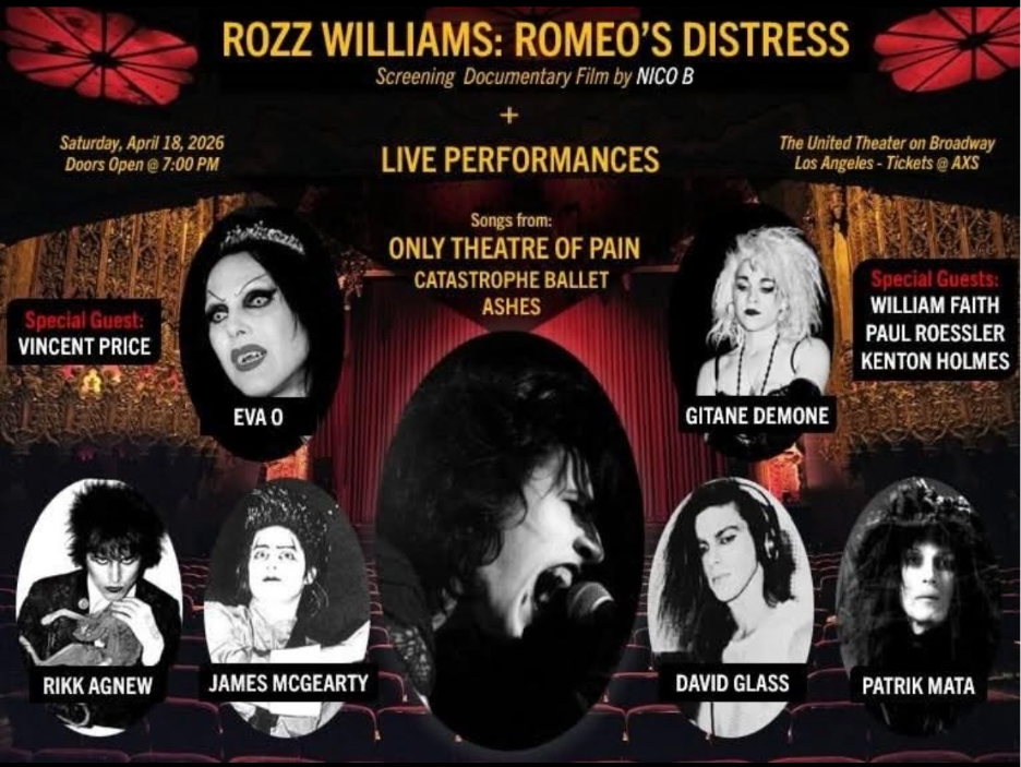 Christian Death was highly influential in the development of deathrock, as well as on the American gothic scene. On April 18th, the documentary screening as well as a star-studded lineup of former band mates takes the stage at the United Theater in Los Angeles. Rikk Agnew and Gitane Demone were gracious enough to fit some time into their busy schedules and answer a few questions about Christian Death, Rozz, their musical journey and what’s coming up.
